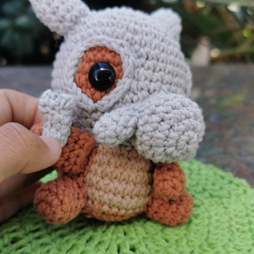 Cubone tejido al crochet, mide 7 cm x 10 cm aproximadamente.