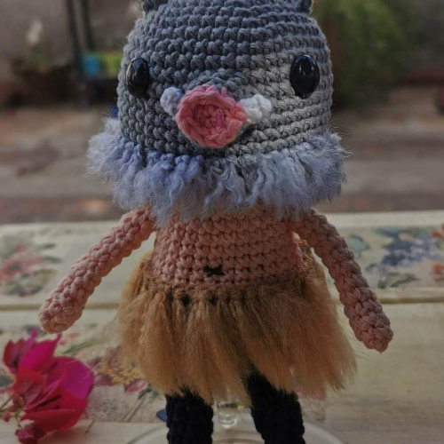 Inosuke tejido al crochet, mide 8 cm x 18 cm aproximadamente.
