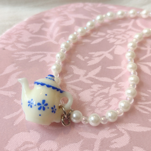Collar de perlas con Tetera. Este modelo de collar también lo podes encontrar con otros modelos de dijes, como tazas, postres y conitos.