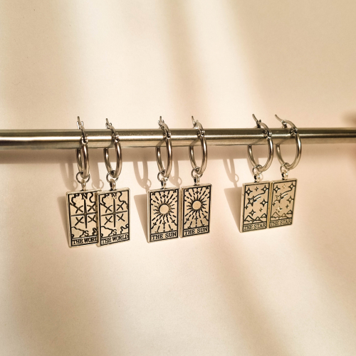Aros de argollas de acero con dijes de carta de tarot (muchos modelos más en la tienda online!) ♡