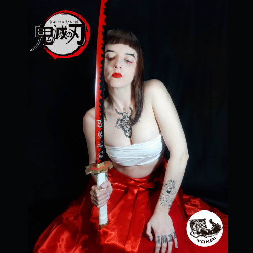 Recreación a escala 1/1 de la espada Nichirin de Kyōjurō Rengoku de Kimetsu No Yaiba realizada 100% artesanalmente en madera.