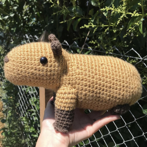 Carpincho tejido al crochet en una mezcla entre hilo de algodón y lana. Sus medidas son 26cm de largo x 15cm de alto.