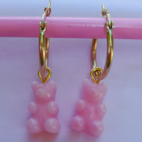 Aros de Osito en argollas de acero quirúrgico dorado. Tenes también la versión con gancho de fantasía.